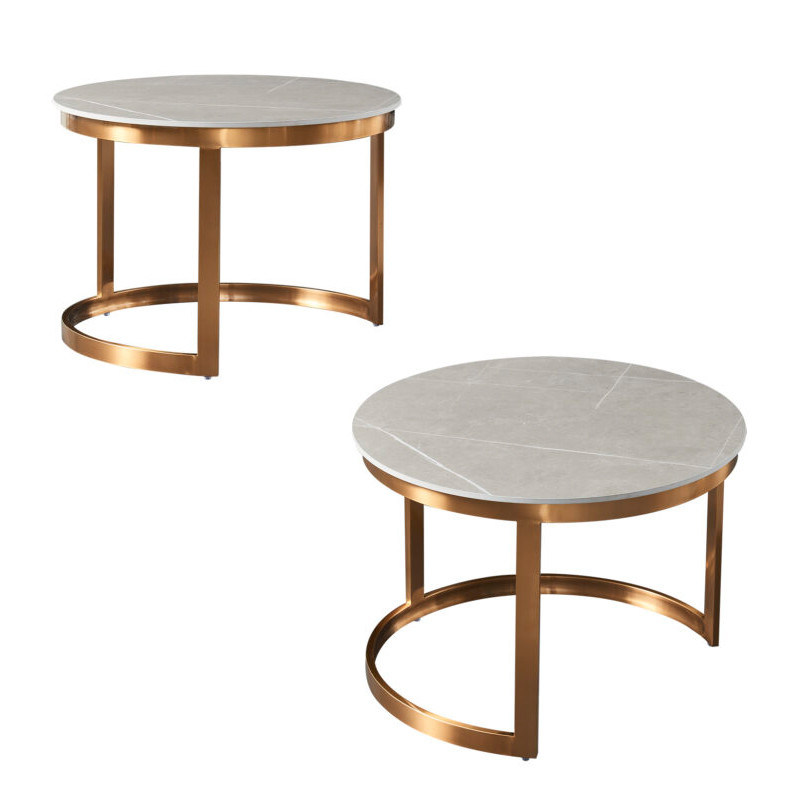 Κεραμικό μαρμάρινο τραπέζι καφέ με καμπύλη από ανοξείδωτο χάλυβα