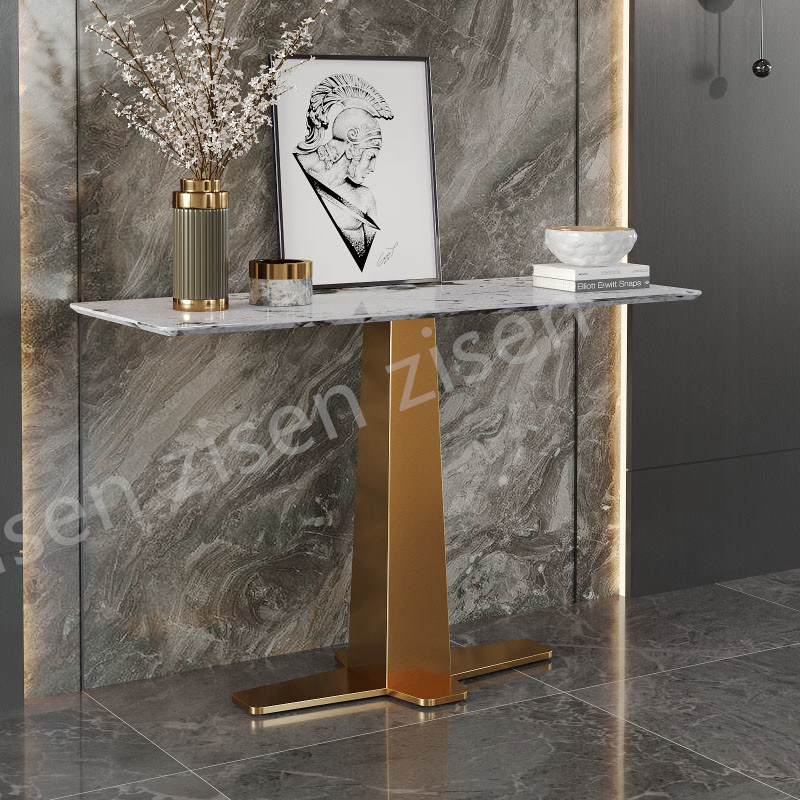 1.Κεραμικό μαρμάρινο τραπέζι: Το τραπέζι της κονσόλας διαθέτει υψηλής ποιότητας κεραμικό μαρμάρινο τραπέζι που προσθέτει μια πινελιά πολυτέλειας και ραφιναρίσματος.Δείχνει τις φυσικές φλέβες και τις χρωματικές παραλλαγές που κάνουν κάθε κομμάτι μοναδικόΗ αντοχή της κεραμικής εξασφαλίζει ότι η επιφάνεια τραπεζιού θα αντέξει την καθημερινή χρήση διατηρώντας την ομορφιά της.