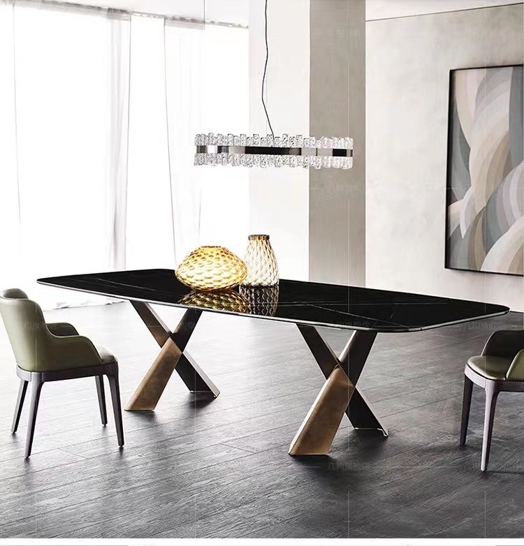 | Ονομασία του προϊόντος | Σύγχρονη πολυτελή συσσωρευμένη πέτρα χρυσή βάση με κεραμική τραπεζαρία έπιπλα τραπεζαρία |